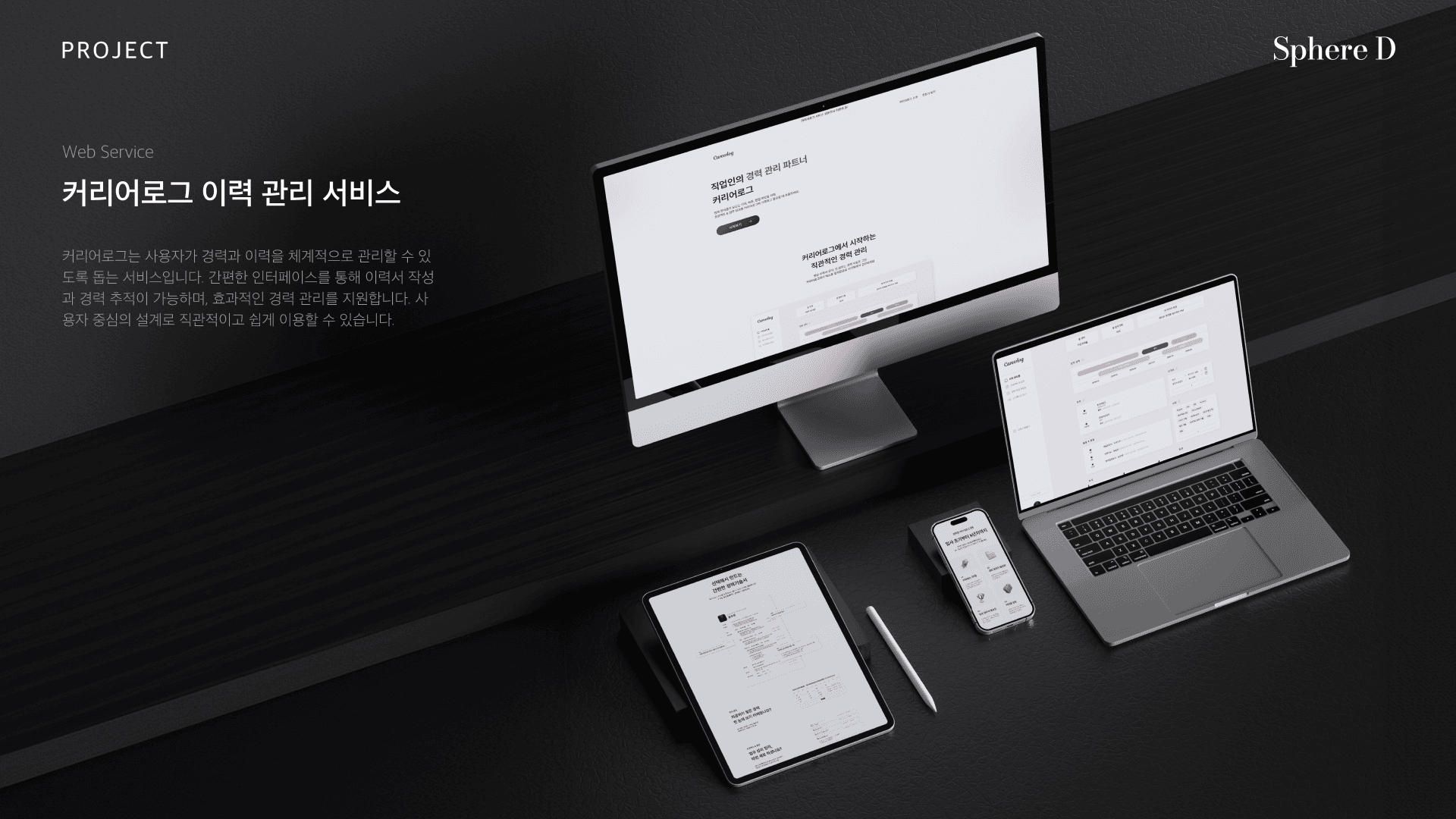 커리어 관리가 단순히 이력을 정리하는 것을 넘어, 자신을 표현하고 미래를 준비하는 과정이 되기를 바랍니다. 커리어로그는 사용자가 쉽고 자연스럽게 자신의 커리어를 정리하고 발전시키는 경험을 제공합니다.